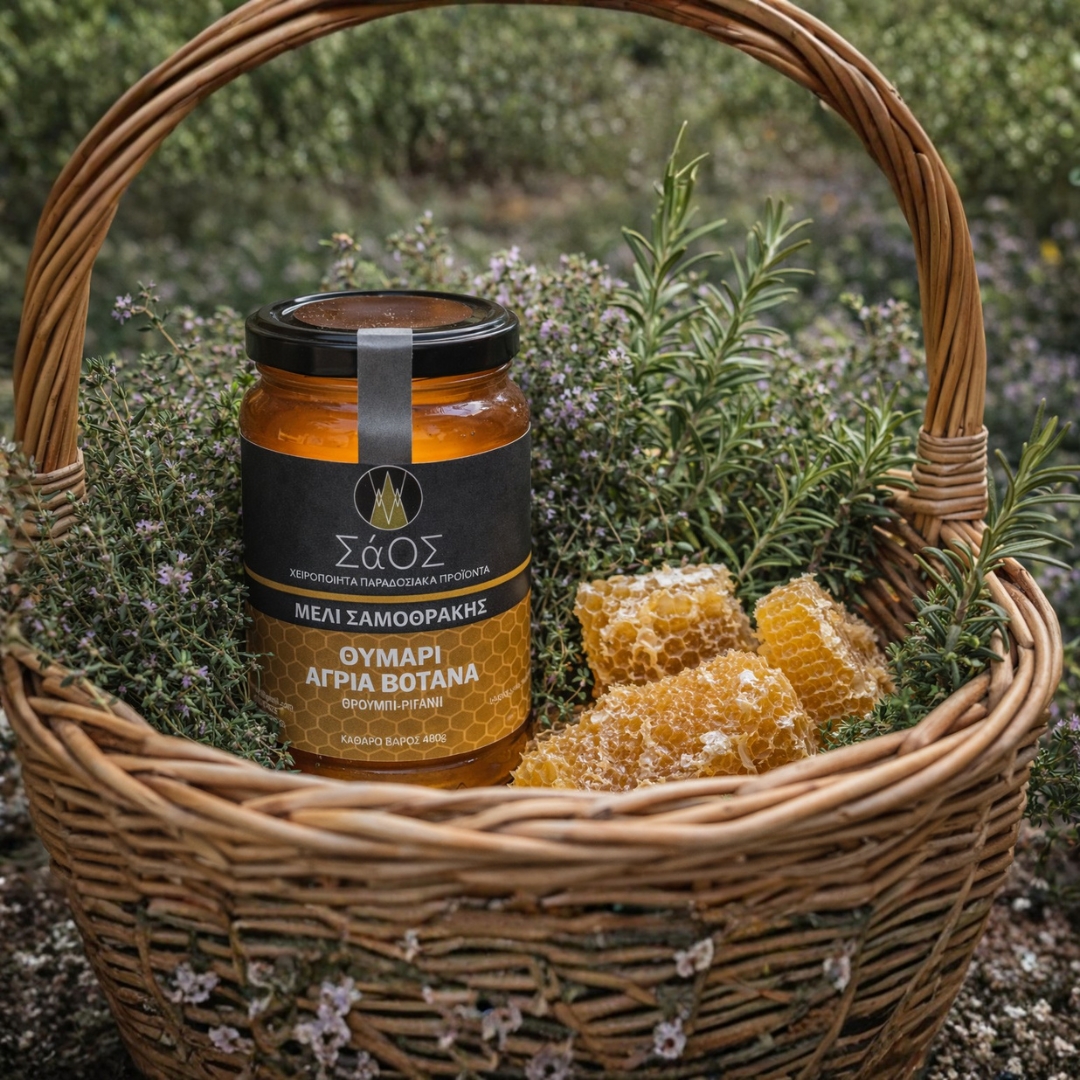 Αρωματικό μέλι από θυμάρι και βότανα, με γεμάτη γεύση και φυσικά ευεργετικά στοιχεία.