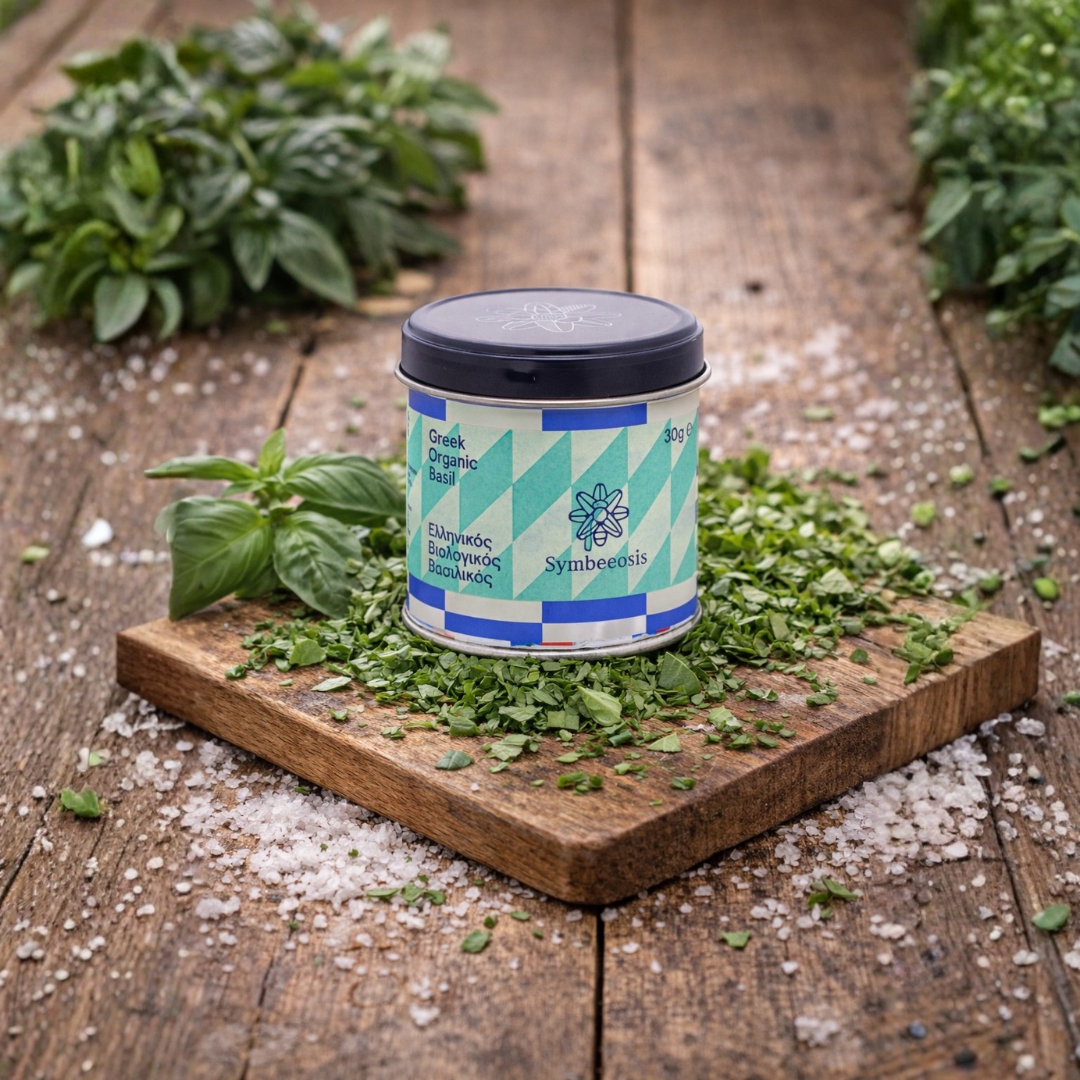 O βιολογικός αποξηραμένος βασιλικός είναι ιδανικός να καταναλωθεί ως τονωτικό ρόφημα και για τις ευεργετικές ιδιότητες στη χώνευση. Επίσης είναι ένα αγαπημένο αρωματικό φυτό που χρησιμοποιείται συχνά στη μαγειρική λόγω του χαρακτηριστικού ευχάριστου και έντονου αρώματός του. Ο βασιλικός είναι ένα ποώδες αρωματικό τροπικό – υποτροπικό φυτό, που οι αρχαίοι Έλληνες το γνώριζαν και το έλεγαν « Ώκιμον». Προσφέρει ευχάριστο άρωμα στο χώρο και διώχνει τα έντομα. Λέγεται ότι τον είπαν βασιλικό γιατί λόγω των ιδιοτήτων του είναι φυτό για βασιλιάδες, ή είναι ο βασιλιάς των φυτών.