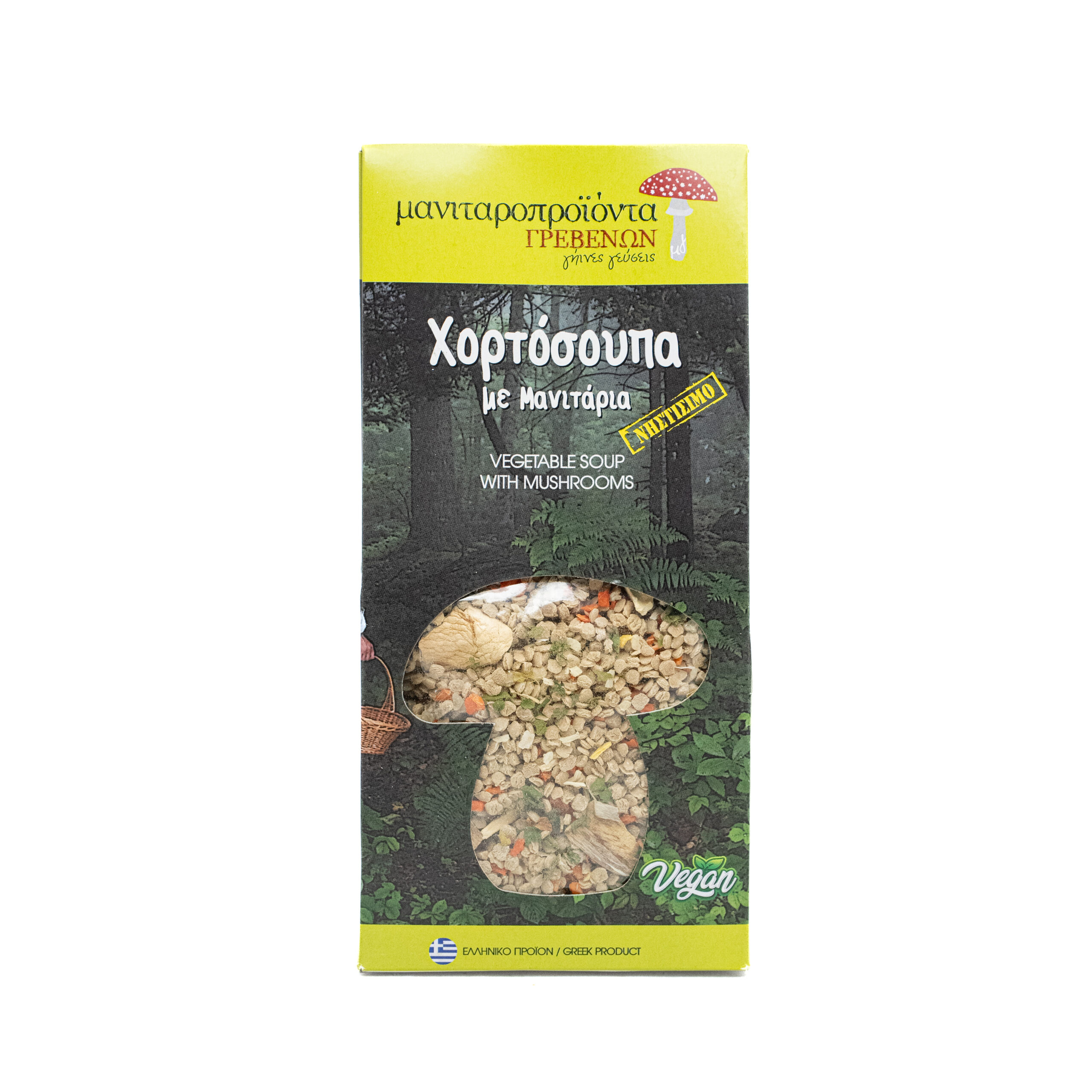 Περιλαμβάνει χορτόσουπα με μανιτάρια από τα Μανιταροπροϊόντα Γρεβενών, κλασικό ταχίνι Κομοτηνής Τζελεπίδου, αρωματικά κουλουράκια κανέλας Ντουρουντούς από τα Σφακιά, μαρμελάδα μήλο με σταφίδες από το Φίλεμα της Λέλας, βιολογικά ρεβύθια Βιοαγρός και χαλβά ολικής άλεσης Ζαμπογιάννης από την Κομοτηνή.