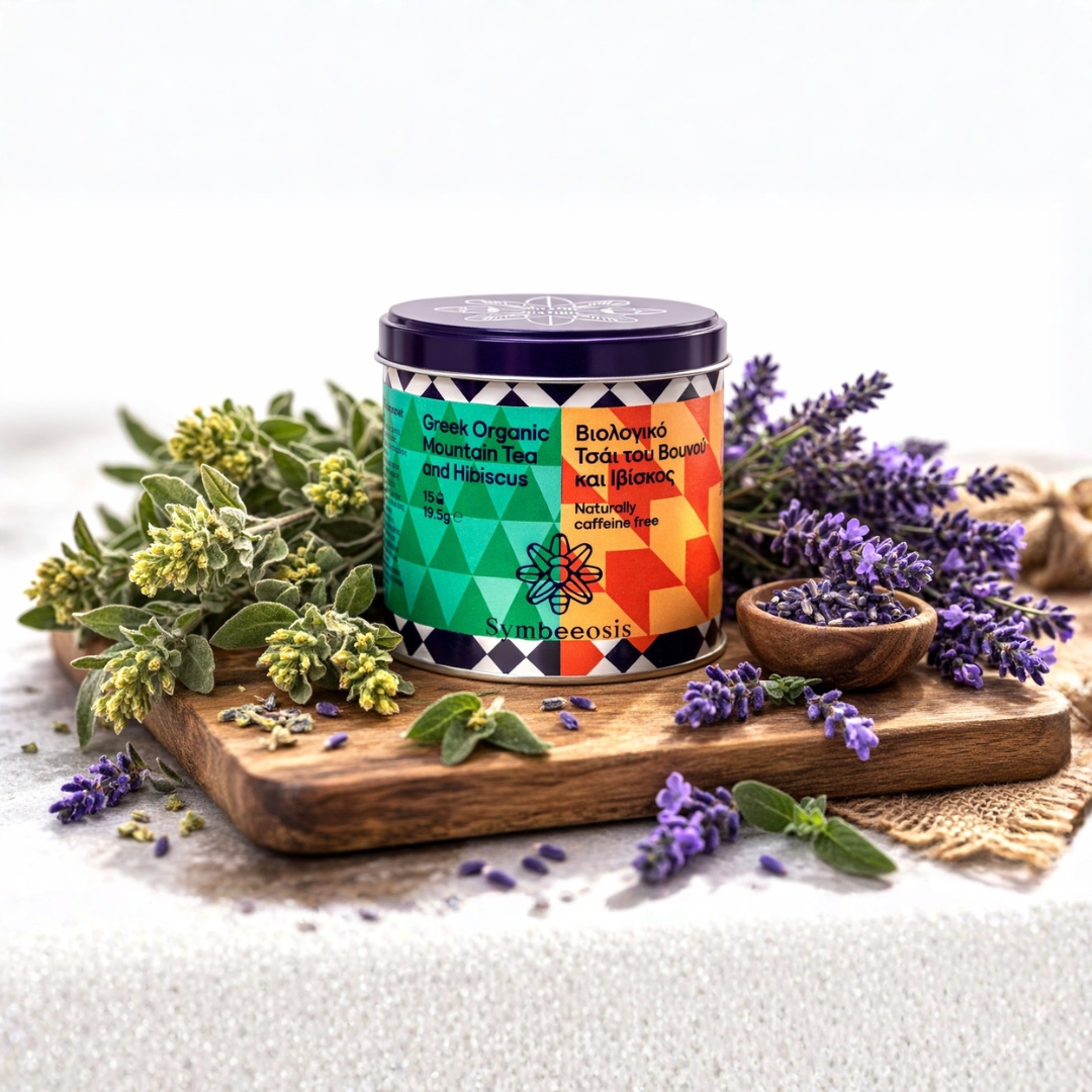 Το βιολογικό τσάι του βουνού Symbeeosis με ιβίσκο είναι ένα αντιοξειδωτικό ρόφημα που βοηθάει στην αποτοξίνωση του οργανισμού. Για μεγαλύτερη δραστικότητα είναι ενισχυμένο με ξηρό εκχύλισμα από τσάι του βουνού. Από τη φύση του χωρίς καφεΐνη, έχει μία ευχάριστη γλυκόξινη γεύση.