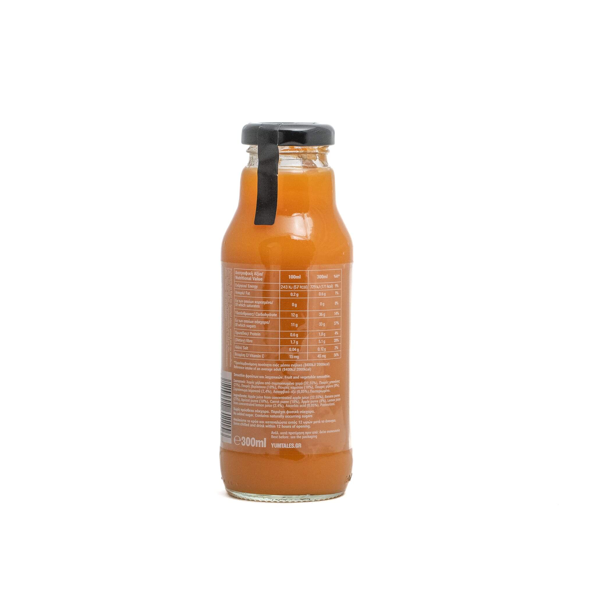 Ένα απολαυστικό smoothie που αναδεικνύει τη φυσική γλυκύτητα του βερίκοκου, τη βελούδινη υφή της μπανάνας και την ελαφρώς γήινη γεύση του καρότου. Το καρότο, πλούσιο σε βήτα-καροτίνη, προσθέτει διατροφική αξία, ενώ το βερίκοκο χαρίζει μια ήπια γλυκύτητα και ένα ελαφρώς ξινό τελείωμα. Η μπανάνα δένει αρμονικά όλα τα συστατικά, προσφέροντας μια φυσικά γλυκιά και κρεμώδη υφή. Χωρίς πρόσθετη ζάχαρη, αυτό το smoothie είναι μια υπέροχη και υγιεινή επιλογή για κάθε στιγμή της ημέρας. Τα smoothies της Yum Tales είναι παστεριωμένα και έχουν μεγάλη διάρκεια ζωής.